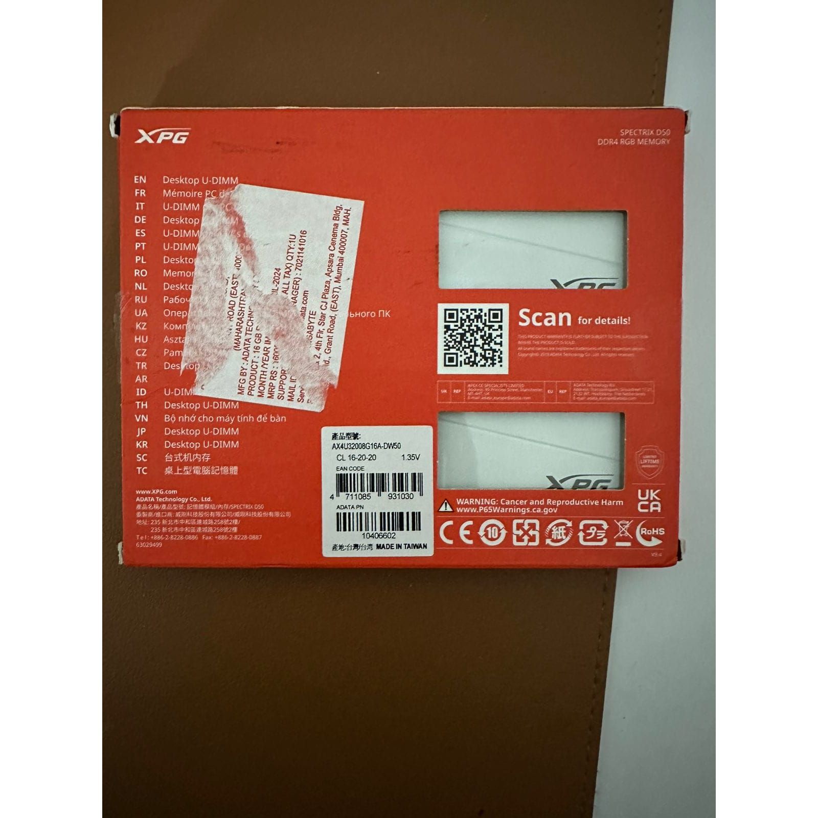 Adata XPG Spectrix D50 16GB (8GBX2) DDR4 3200MHz RGB White Used RAM
